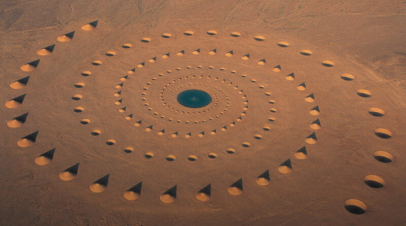 “ The project meant to suggest an experience of infinity with the desert as a landscape of the mind,” stated the artists. Finished in 1997, Desert Breath is still viewable two decades after its creation. However at the center of the art piece used to be a body of water, which has since evaporated.
